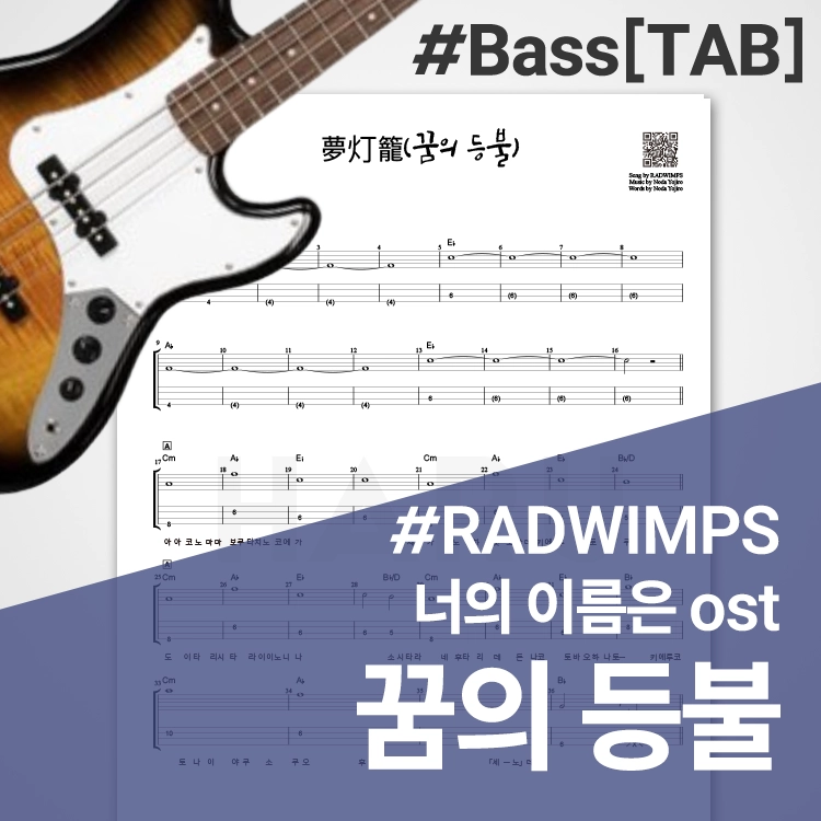 베이스기타)Radwimps - 꿈의 등불 (너의이름은 OST)